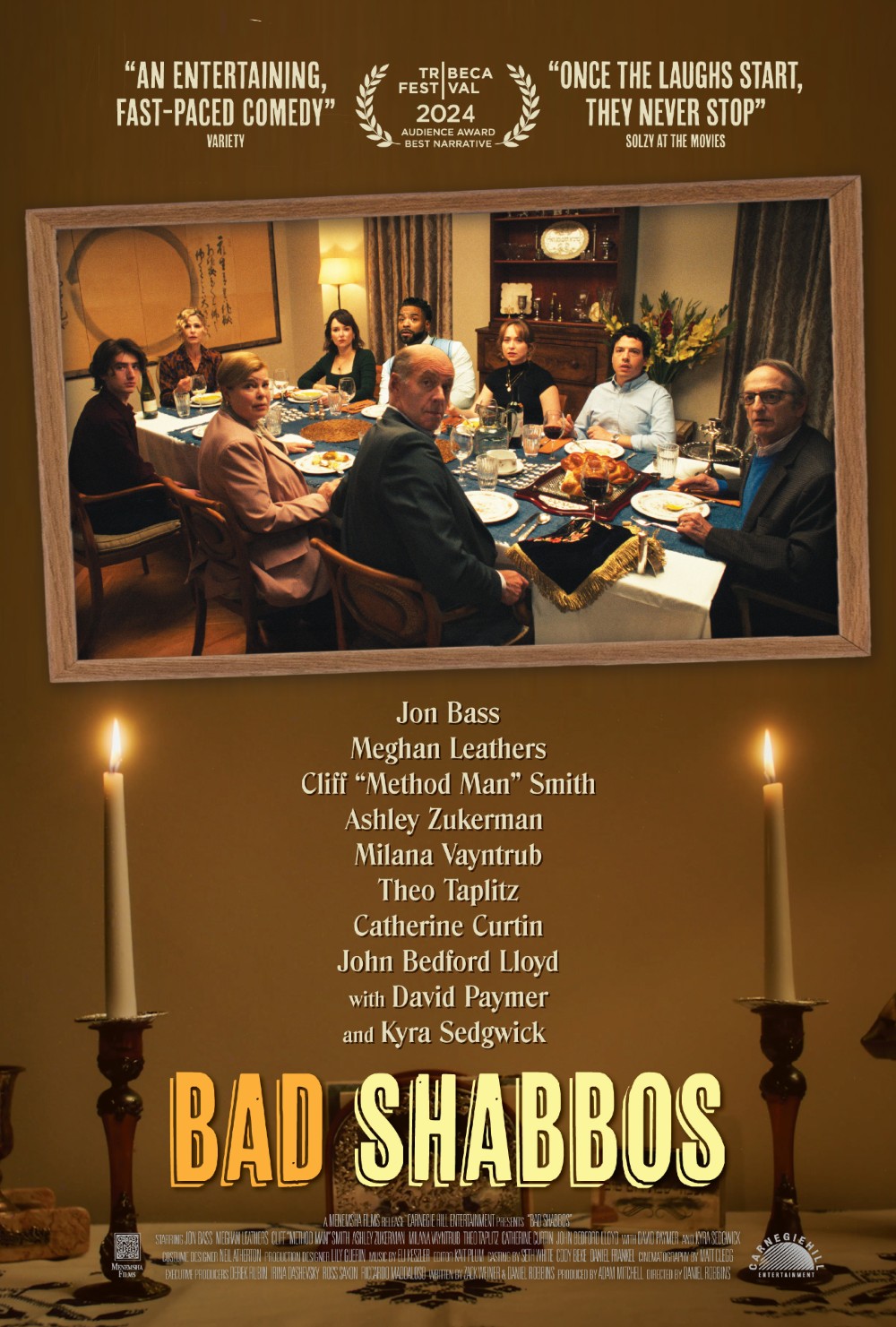 There haven’t been many comedies about Jewish traditions, something that filmmaker Daniel Robbins hopes to change with Bad Shabbos, his award-winning ensemble comedy with one of the most eclectic casts of Hollywood veterans, newcomers, and even a rap star. The premise for the movie involves Jon Bass’ David bringing his Goyim (i.e. non-Jewish) fiancée Meg (Meghan Leathers) to join his family for a traditional Sabbath dinner. Meg’s parents are also coming and meeting David’s family for the first time, so what could possibly go wrong?