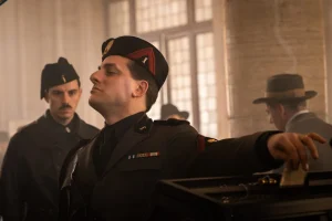 Joe Wright: In Antonio Scurati’s fantastic book there’s a small section at the beginning where Mussolini talks in first person. That truly inspired us to develop that idea into having Mussolini speaking directly to the audience. It was important for us to break down the barrier of history, of time, and have Mussolini reach across into our living rooms and address us directly. tWe wanted to bring it into the present, because it seems that the parallels are so clear with our contemporary situation that it was important to bring him into the present. This idea that he is attempting to control the narrative which as the show goes on as you know he begins to lose control of.