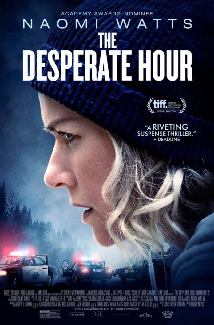 Synopsis : Unfolding in real time, THE DESPERATE HOUR is a “riveting and pulse pounding” thriller from award-winning director Phillip Noyce. Recently widowed mother Amy Carr (Academy Award®-nominee Naomi Watts) is doing her best to restore normalcy to the lives of her young daughter and teenage son in their small town. As she’s on a jog in the woods, she finds her town thrown into chaos as a shooting takes place at her son’s school. Miles away on foot in the dense forest, Amy desperately races against time to save her son.