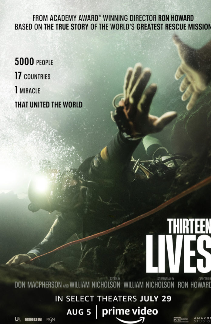 Synopsis :Thirteen Lives recounts the incredible true story of the tremendous global effort to rescue a Thai soccer team who become trapped in the Tham Luang cave during an unexpected rainstorm. Faced with insurmountable odds, a team of the world’s most skilled and experienced divers — uniquely able to navigate the maze of flooded, narrow cave tunnels — join with Thai forces and more than 10,000 volunteers to attempt a harrowing rescue of the twelve boys and their coach. With impossibly high stakes and the entire world watching, the group embarks on their most challenging dive yet, showcasing the limitlessness of the human spirit in the process.