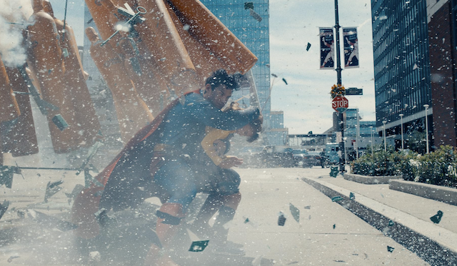 Superman has been taken down by the Boravian Hammer, which is actually a billion-dollar LARP suit that can be controlled from the Luthor Corp., at the skyscraper headquarters, a team is instructed by Lex Luther (Nicholas Hoult), who stands before computer screens and uses a headset to communicate coded battle directions to drone-assisted henchmen.