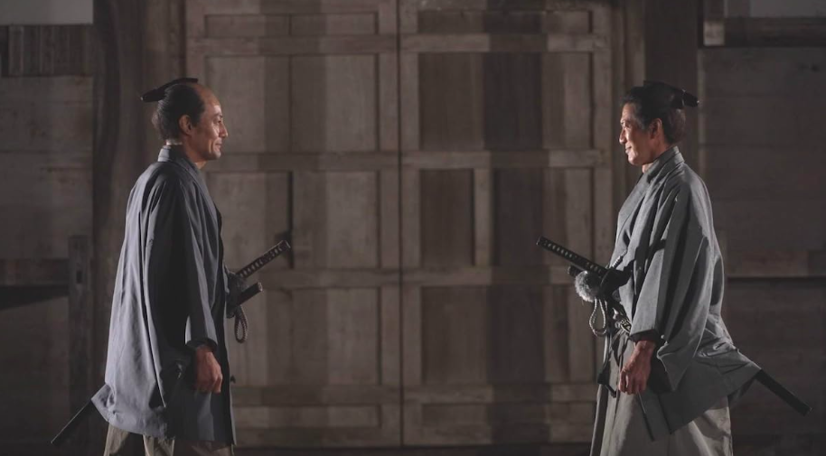 The movie, part of the 2025 Japan Cuts, is beautifully shot, both when it comes to the action scenes, as well as the more intimate moments, that provide a profound connection with the characters. When the two opponents of an upcoming duel are sitting on a porch, the shot recalls a scene from Yasujirō Ozu’s Late Spring; of two rocks and two fathers with overlapping triangle shots. In Ozu’s film, the two fathers discussed how they raised children who would then go off to live their own lives. In A Samurai In Time the two warriors are silent, but their quiet immobility is incredibly expressive.